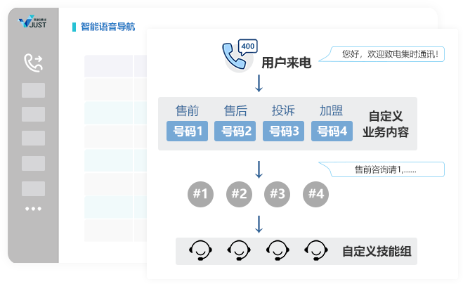 1、支持多條業(yè)務線、多種號碼段接入(400、固話、手機等)